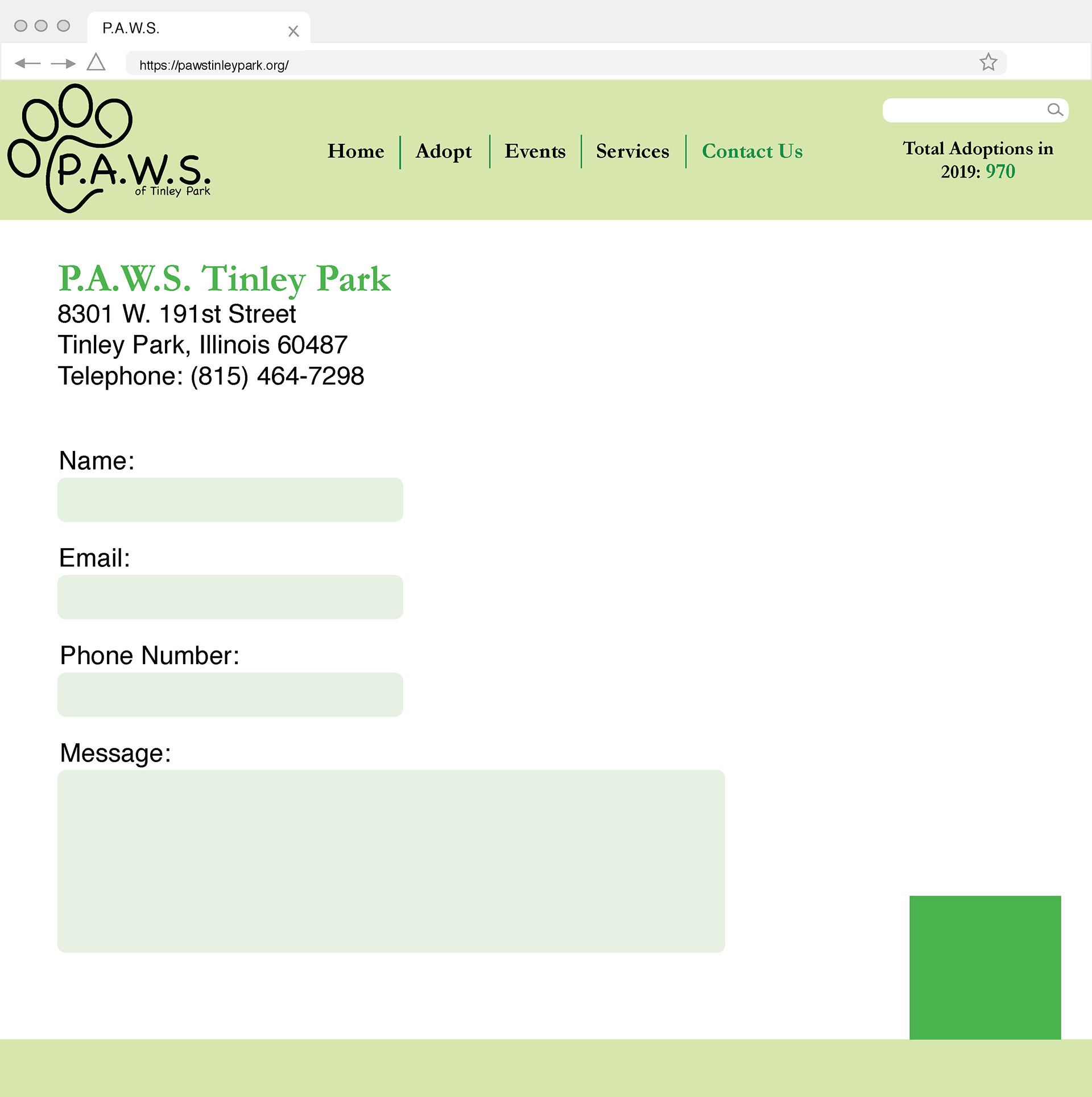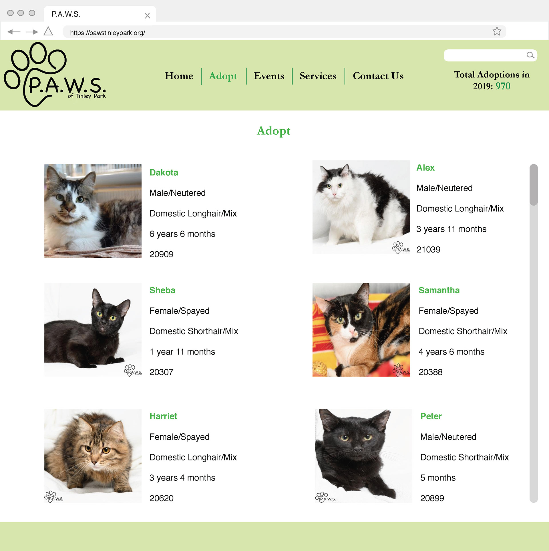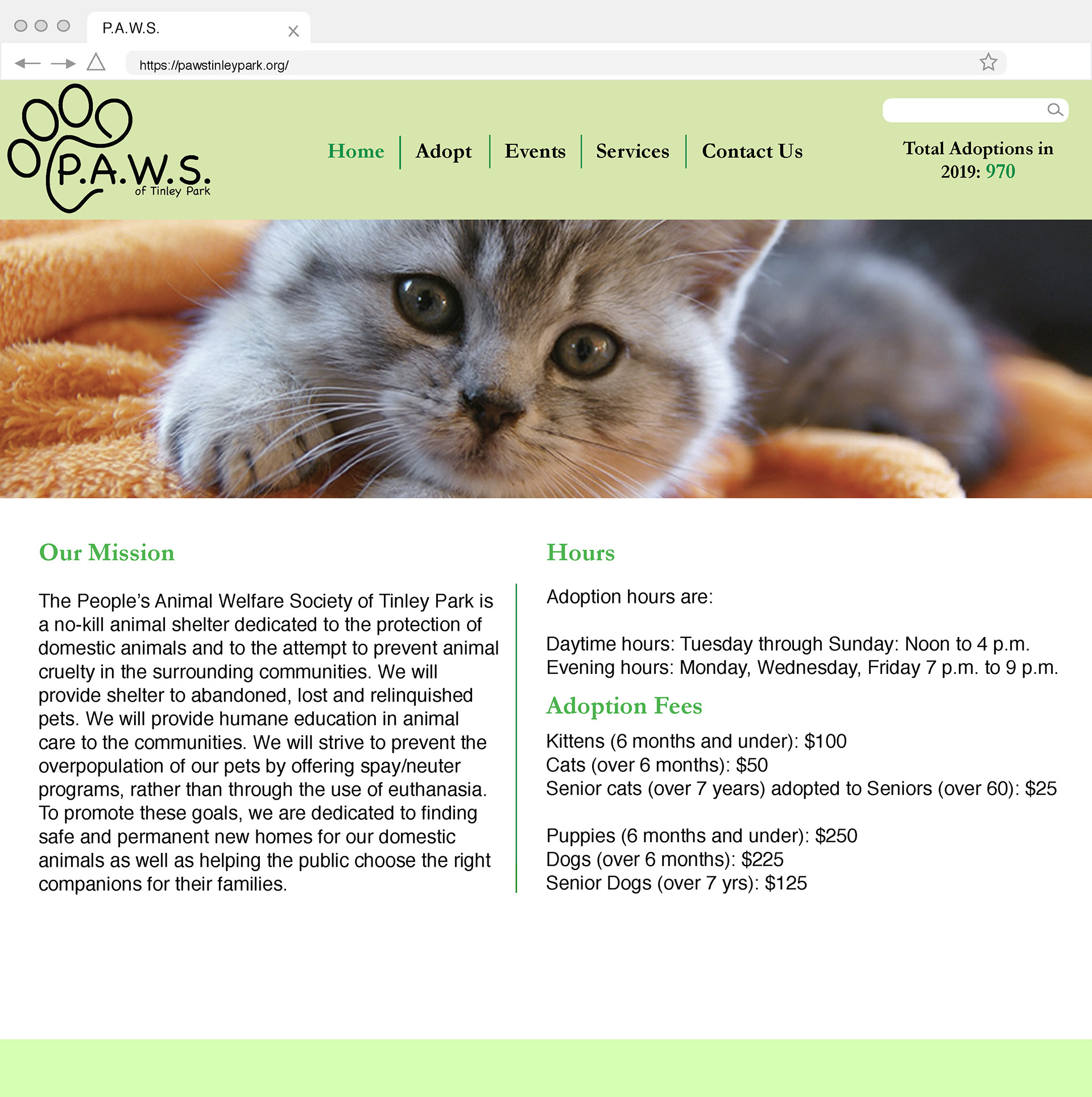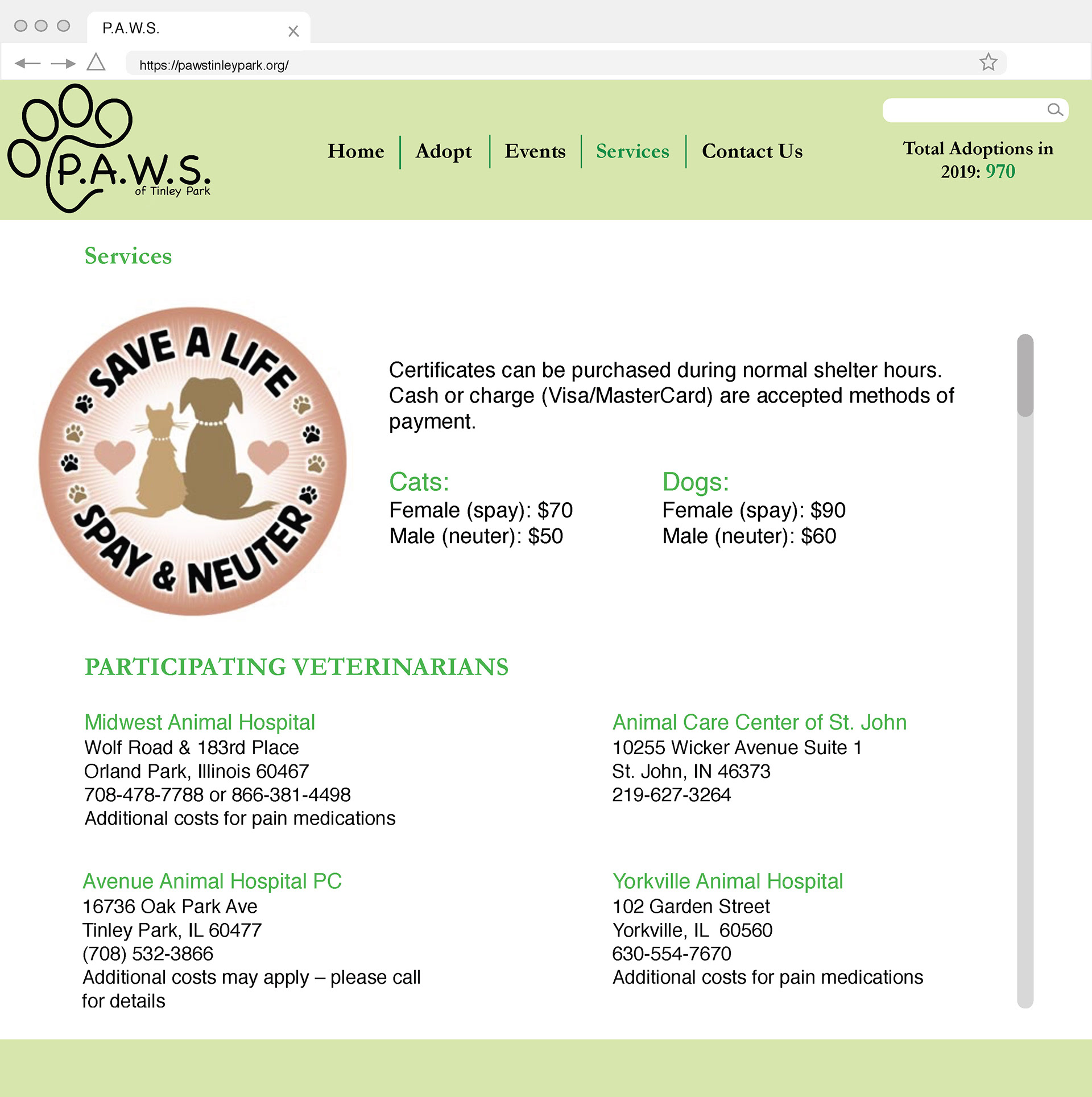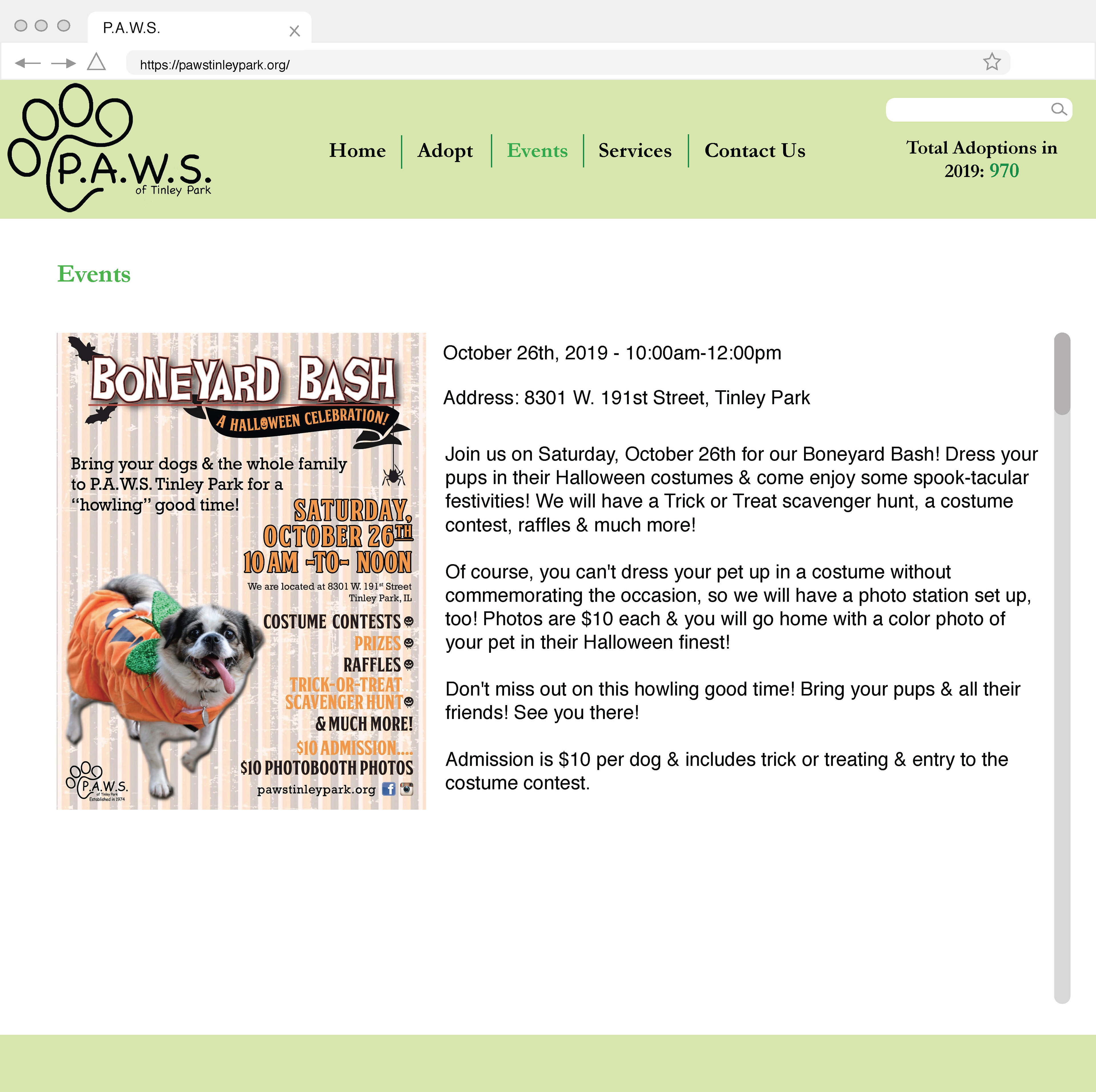 Above is a concept for a brand new website for the organization, P.A.W.S. in Tinley Park, IL.